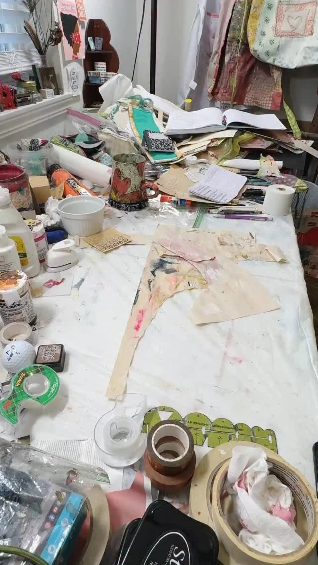 My interests...usually art, and sometimes junk, maybe some DIY. I love color, collage, vintage, re-purposed, worn...all things loved. I am addicted to vintage silverware and old clocks; oh- and dictionaries. I really like vintage books, paper, and fabric and if I can stuff it into my sewing machine to sew on it....I will. I love sewing on paper!