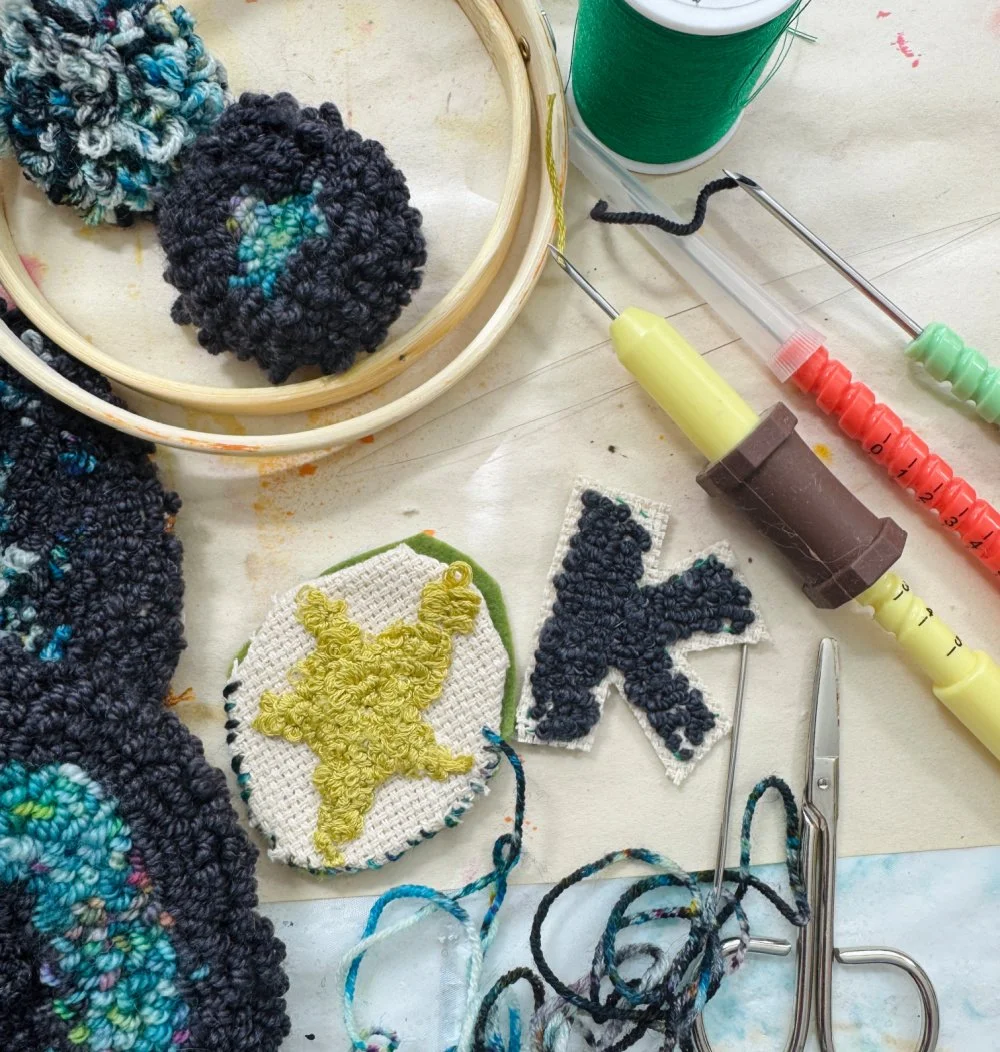 In this hands-on, heart-led class, you’ll explore the ancient art of symbol-making through punch needle embroidery. Using yarn and your own intuitive creativity, you’ll create soft, textured works that hold personal meaning through symbols of healing, empowerment, and hope. Whether you stitch a circle, a sigil, a word, or an abstract form, each loop becomes part of a larger story of how you can reclaim your confidence as a maker with a voice.